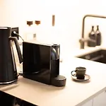 Découvrez le confort ultime dans la cuisine des propriétés Tatari 16 City Centre New Apartment, équipée d'une bouilloire électrique, d'un réfrigérateur et de la vaisselle. L'aéroport international de Tallinn peut être atteint en 8 minutes en voiture.